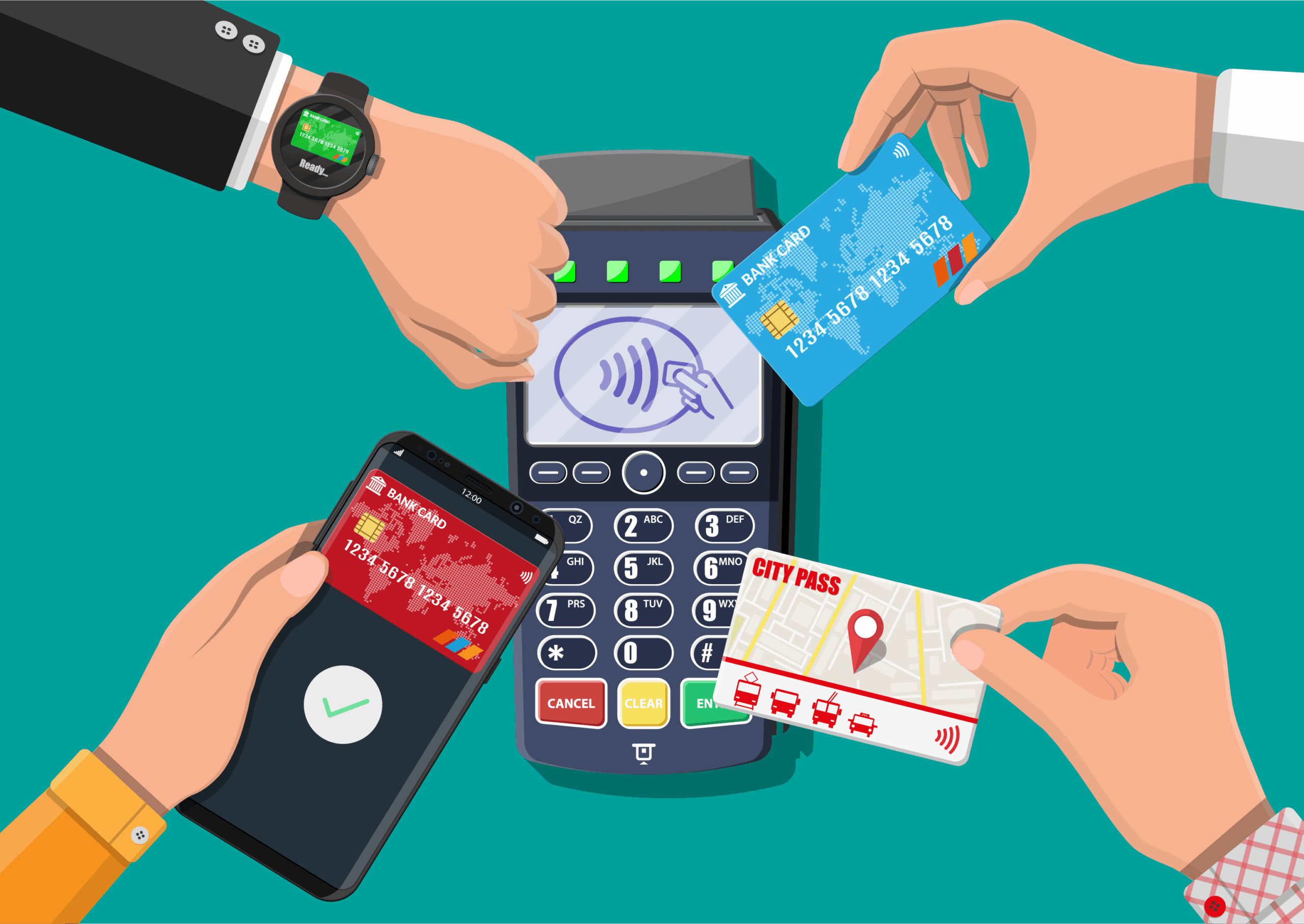 – Contactless payments – using mobile devices or NFC Cards